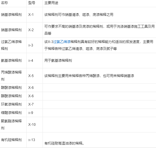 那么常见的油漆稀释剂请看下表: